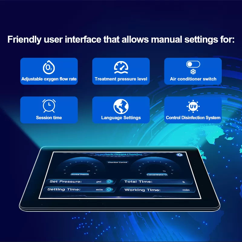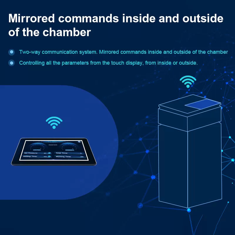Features an intuitive digital data display that enhances user experience and provides precise monitoring of pressure levels, session time, and safety parameters – essential for professional medical and wellness applications.