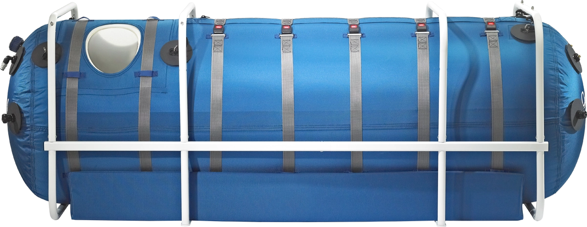 The Quamvis320® represents our most advanced design, featuring the industry's most secure wall construction. Its spacious 32-inch diameter interior and innovative exterior frame provide a non-restrictive treatment environment with an intuitive support system for easy entry and exit. Equipped with dual pressure control valves, this chamber accommodates both physician-supervised and self-administered treatments. The strategically angled air-intake port and tamper-proof redundant pressure regulators ensure consistent airflow circulation throughout every session. Built with extreme-performance reinforced ballistic nylon and an external "SafeSet" buckling system, the Quamvis320® exceeds rigorous safety standards while remaining practical for clinical and personal use. All medical-grade components guarantee safe, long-lasting functionality for years to come.